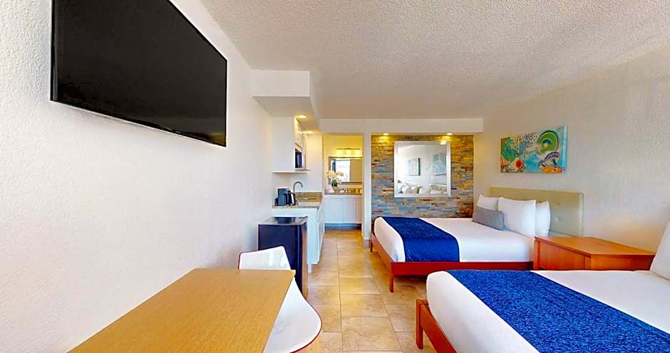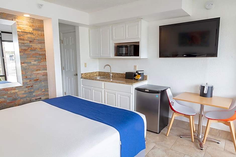 The outdoor pool is heated and features a shallow end, staying open all season for a refreshing dip no matter the weather. Around it, a sun deck and garden create laid-back spaces to soak up sunshine and enjoy the Florida breeze. The layout leans toward practical comfort, with round-the-clock assistance from the front desk and easy access between floors via elevators. It’s all designed to keep stays convenient and affordable, without sacrificing a touch of leisure.